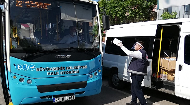 Kahramanmaraş Büyükşehir Belediyesi, toplu taşıma araçlarında maske dağıtımı ve el dezenfektan teminine devam ediyor.